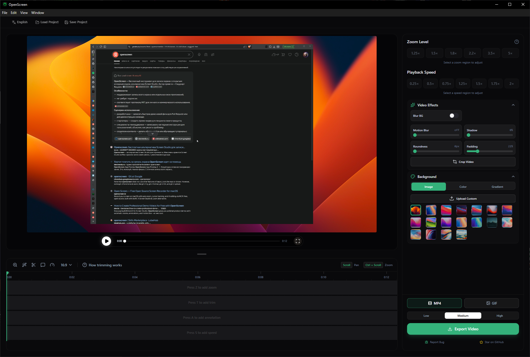 Удобное и красивое приложение для записи видео рабочего стола — Open Screen.